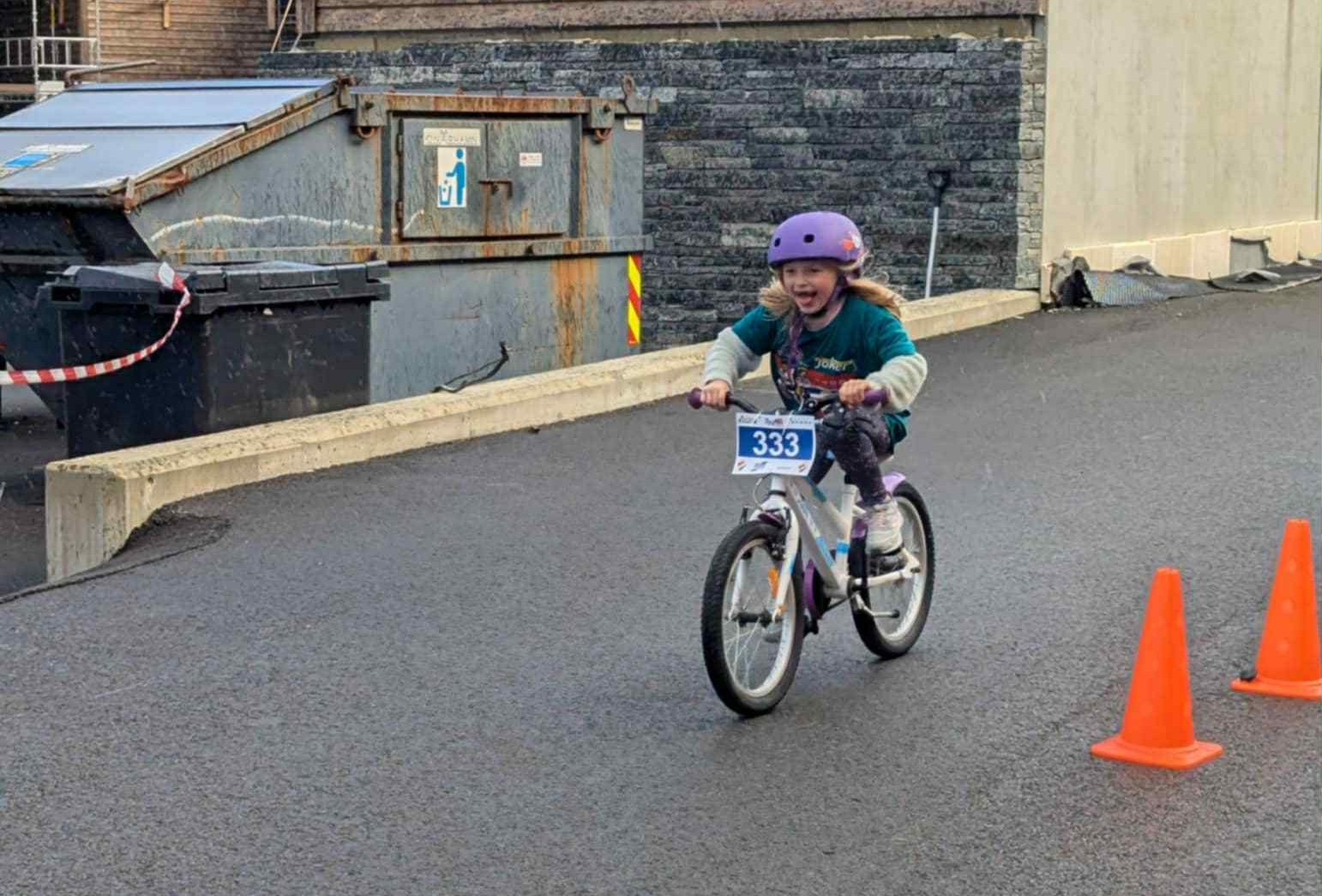 Hele 120 barn stilte til start, og med suveren hjelp og frontsyklist fra Onarheim Idrettslag i spissen ble det full fart og jubel i løypa!