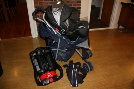 Det følger også med trillevogn i samme merke som sete settes oppi,