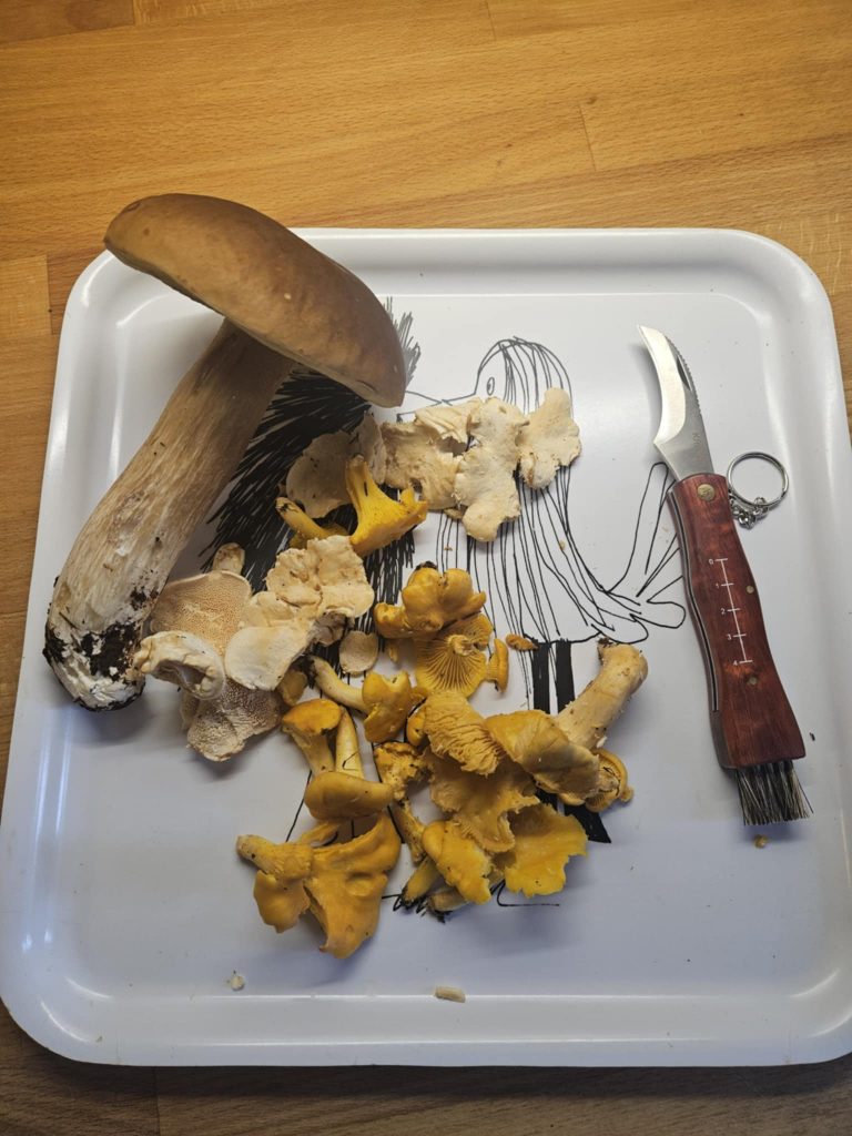 Litt regn på slutten av turen, men soppfangsten kom likevel heilberga med heim.