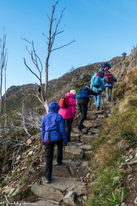 Kattnakken var målet for turen denne dagen. Vi har vært der før, men nå ville vi prøve den nye trappa som sherpaene hadde laget opp Fossabrekko.
