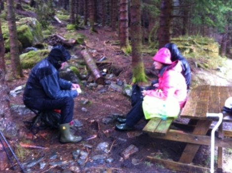 Deilig med ly under gapahukken med en liten pause og nistemat!