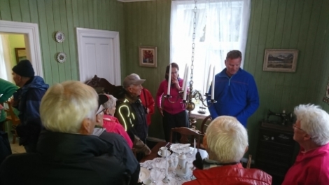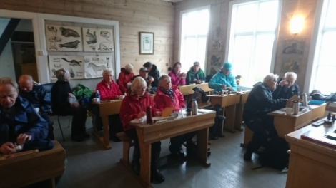 17 stykker tok turen først inn til lysløypa. Deretter gikk turen ned til den gamle skolen og museet. Der fikk vi lov til å spise nista og ble servert kaffe ved skolebenkene. Det ble sikkert ikke ungene som hadde sittet der før. Utrolig fint laget til og all ære til de som har fått dette i stand.