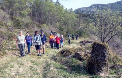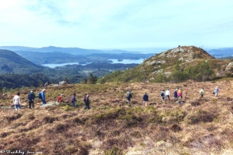 16 deltakere denne gangen som fikk seg en fin tur opp mot Ilefjell, men vi tok av før det, og gikk vestover mot Andersland, men ned igjen til parkeringsplassen ved Dalen. På veien hadde vi en matstopp på toppen av Hesten i deilig sol, men med litt kald trekk. For flere var den vegen Ragnhild viste oss ny, og kunne være litt utfordrende på visse strekninger, men fin tur ble det og mosjon fikk vi.