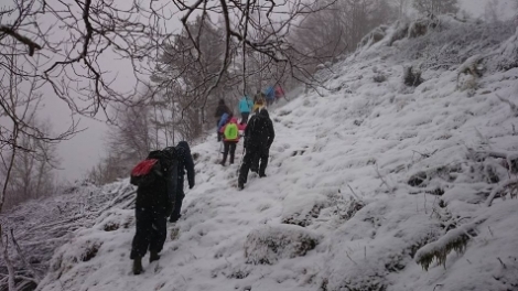 Derfra gikk turen bratt oppover i nysnøen. Litt utfordrende men vi kom oss både opp og velberget ned igjen. Neste tur går til Gjerstadstølen hvis det ikke blir for mye snø.