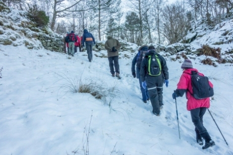 På turen innover gikk vi gamlestien gjennom skogen forbi Grøteid. Mye er grodd igjen her men vi fant frem i snøen. Mat og drikke ble fortært ved enden av “nye” veien og turen tilbake gikk langs denne.