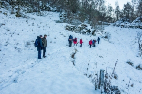 På turen innover gikk vi gamlestien gjennom skogen forbi Grøteid. Mye er grodd igjen her men vi fant frem i snøen. Mat og drikke ble fortært ved enden av “nye” veien og turen tilbake gikk langs denne.