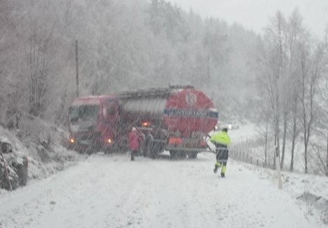1622: I følgje lensmann Lorentz Lunde var tanken tom då ulukka inntraff. Bilen har nyleg vore lasta med polyester, som kan vere forklaringa på den sterke lukta i området. Den største lekkasjen frå bilen er frå Dieseltanken.