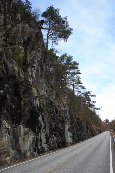 På kanten av ei høg vegskjering på vegen mot Lukksund brua (eller kanskje meir kjent som “Sondavegen” blant lokale) har eit mellomstort tre rotvelta.
