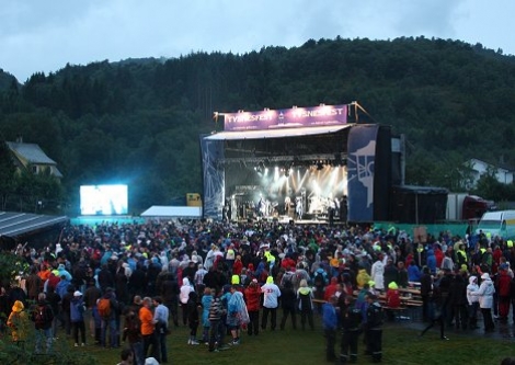 Trass regnvér var skuleplassen på Gjerstad fyllt med konsertglade folk til Tysnesfest. Kor mange tusen det var er ikkje godt å sei, men det må ha vore ny publikumsrekord for konsert under Tysnesfest.