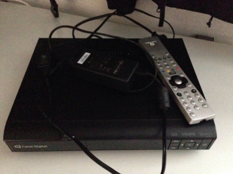 To TV 32″ uten fot, og 38″ flatskjerm med fot. En Canal digital parabol opptaksboks. Kr 300- 500- og 500-!