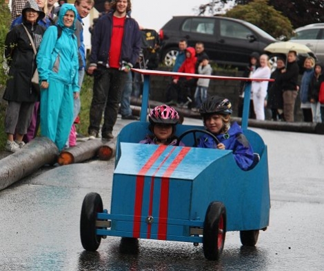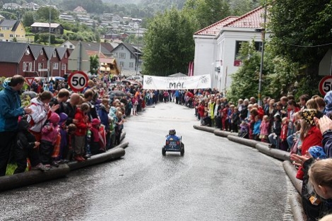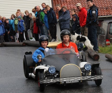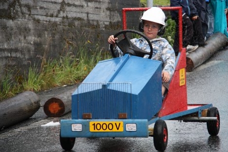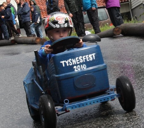 Kassabilløpet på marknadsdagen under Tysnesfest er noko av det publikum likar aller best. Trass i at véret var så som så med nedbør, møtte folk opp i hopetal for å få med seg årets Tysnes Grand Prix.