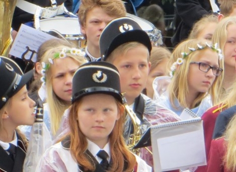 Det startet med lydprøver kl 11. Deretter sang de bursdagssangen for Trude Dreveland. Dronningen ankom med politieskorte litt over kl 12. Det ble framført fire nummer: “Norge i rødt, hvitt og blått”, “Nystemten”, “Kongesangen”, “Gammel jegermarsj” og “Det går et festtog gjennom landet”.