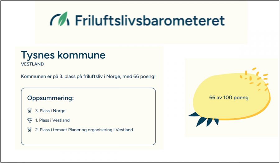 Vi vil gratulere Tysnes kommune som kom på 3. plass i kåringa med 66 poeng!