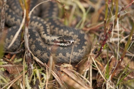 Ho fortel at ho hadde vore ein tur i skogen og funne bjørkeris då ho stogga ved ei tue for å konstantere at maurane hadde vakna til liv. Sola steikte og ho tenkte at her hadde nok hoggormen likt seg… Det var då ho oppdaga ikkje berre ein, men heile tre hoggormar berre nokre meter unna. Heldigvis hadde ho støvlar på seg, og fekk teke desse flotte bileta av ormane.