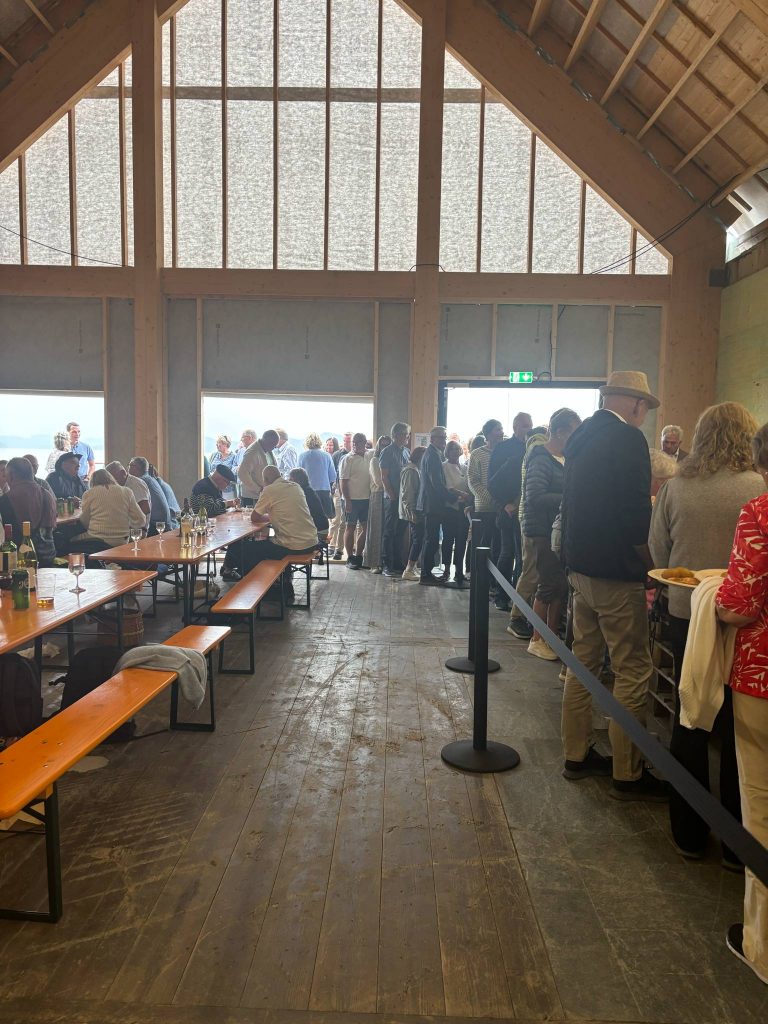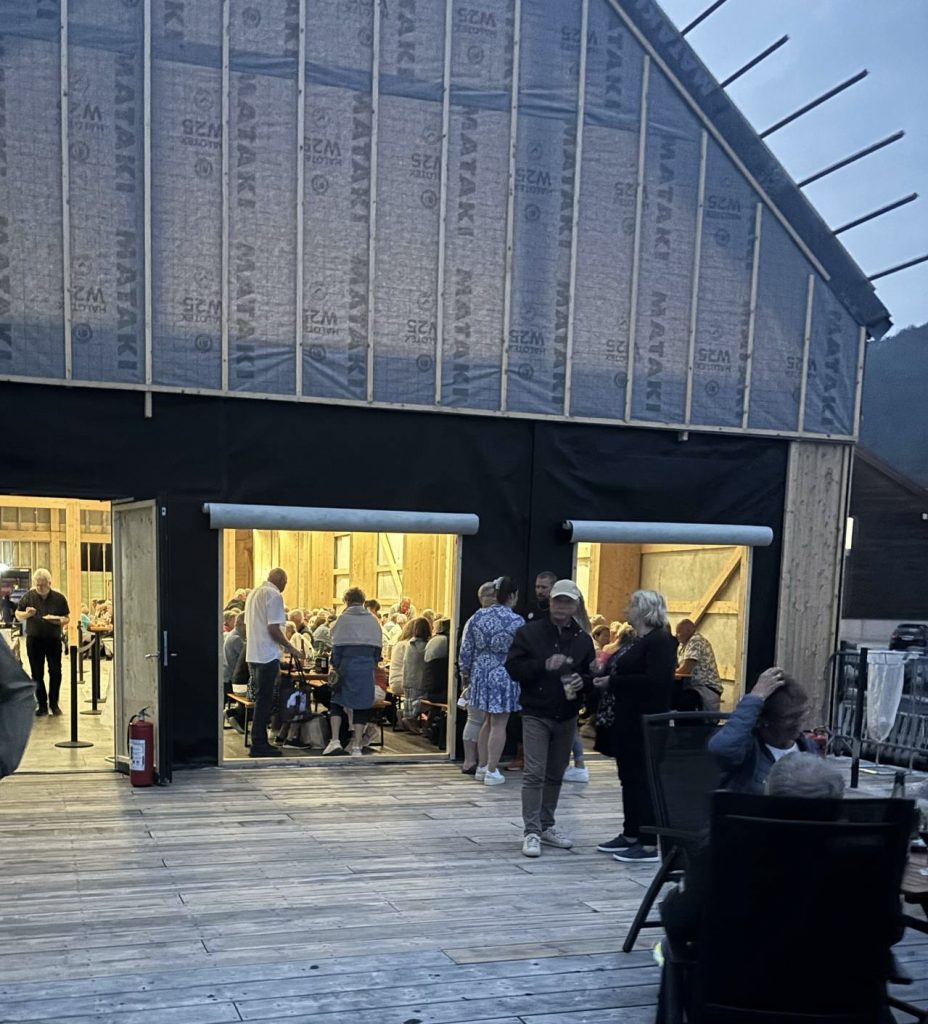Det var mange som kom, også i år, både Tysnesingar og tilreisande. Ekstra kjekt var det at det nye grindabygget vart tatt i bruk denne kvelden. Tradisjonen tru vart det servert laks med mykje godt tilbehør.