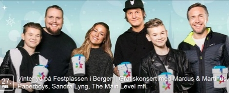 Marcus & Martinus, Paperboys, Morgan Sulele, Innertier, Staysman & Lazz, Robin & Bugge, Sandra Lyng og (sist men ikkje minst): Bergensbandet The Main Level med Tysnesingen ALexander Instøy.
