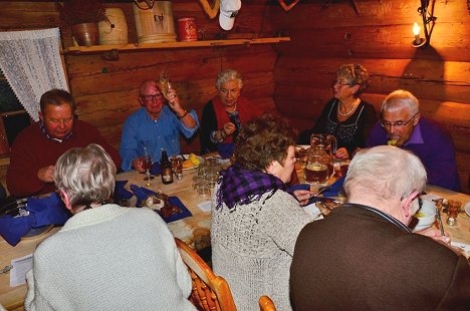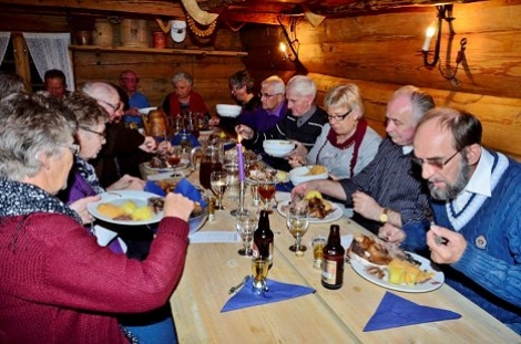 Klokken halv 9 om kvelden troppet vi så opp på Smalahovetunet hos Løne, hvor det ble servert smalahove og andre delikatesser fra Voss + litt hjemmebrygget drikk. For flere av oss var det første gang vi våget oss på dette, men det så ut til å falle i smak hos de fleste tross noe skepsis i utgangspunktet.